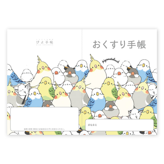 B5サイズノート シマエナガのインコと文鳥がいっぱい セキセイインコ、オカメインコ、文鳥、シマエナガ