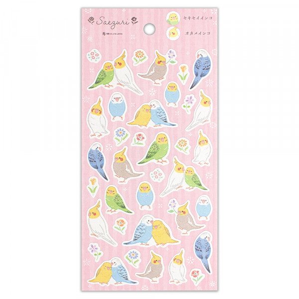 パスケース シマエナガのインコと文鳥がいっぱい セキセイインコ、オカメインコ、文鳥、シマエナガ