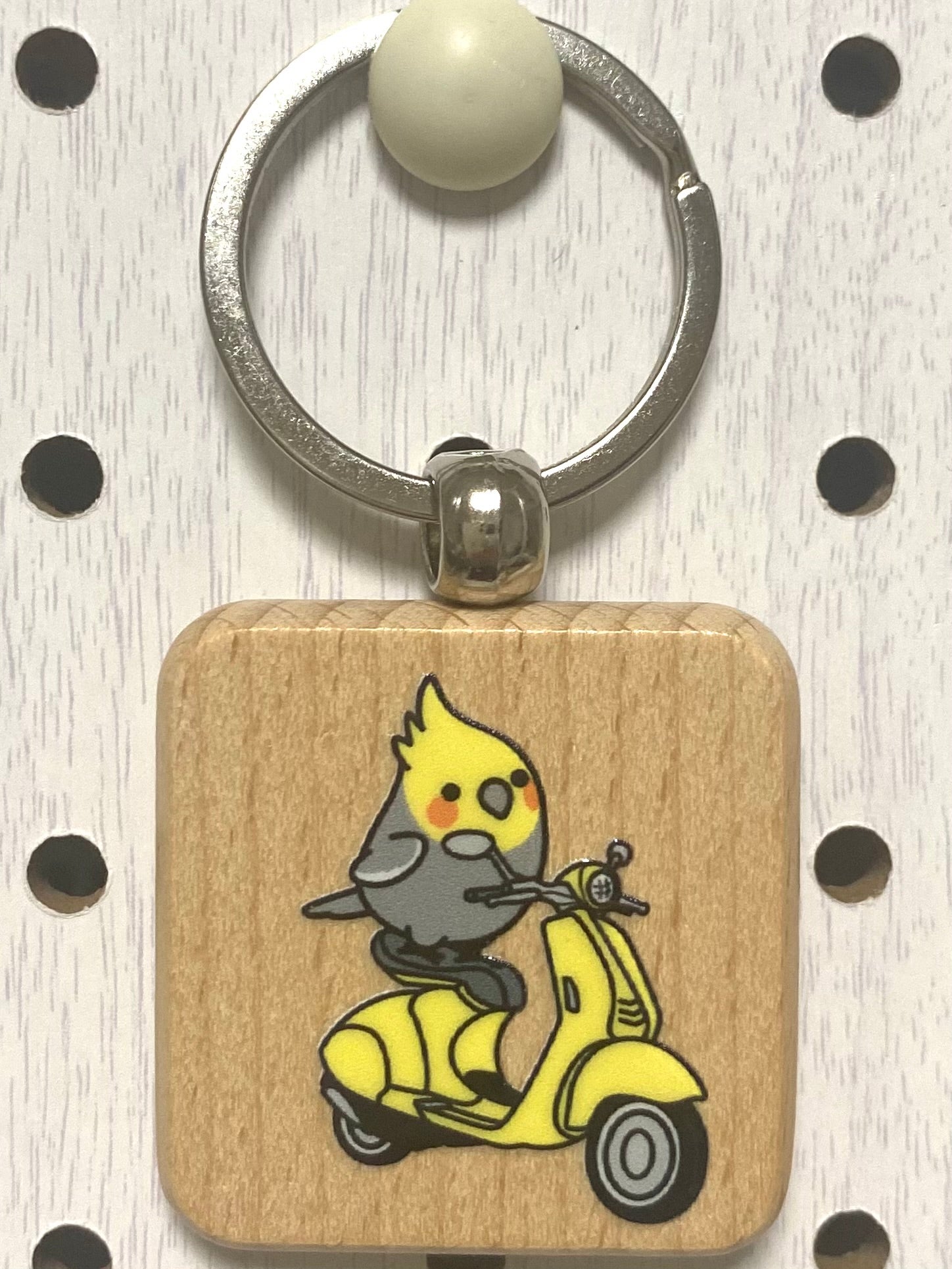 Chubby Bird 木製キーホルダー バクに乗ったオカメインコ クーポン利用不可