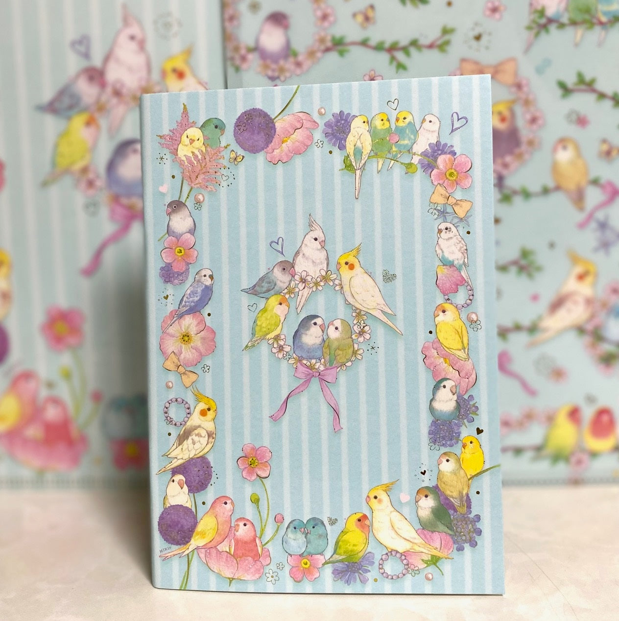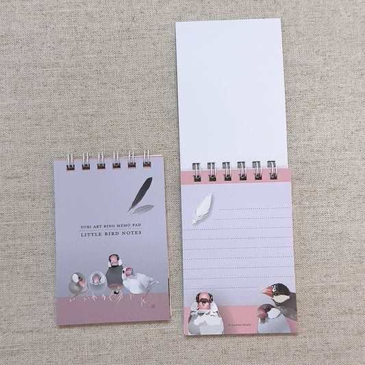 ミニリングメモ シマエナガのインコと文鳥がいっぱい