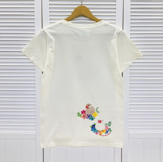 レディースTシャツ フラワーことりシリーズ 白文鳥 受注製作 送料無料 クーポン利用不可