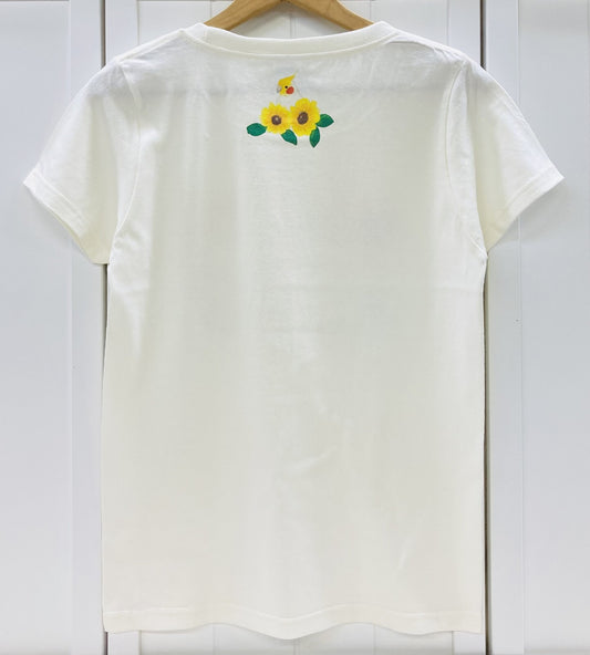 レディースTシャツ 向日葵とオカメ オカメインコ 受注製作 送料無料 クーポン利用不可