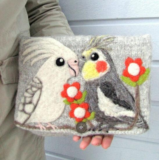 愛鳥コレクション 羊毛フェルトバッグ コガネメキシコインコ & ナナイロメキシコインコ ラージサイズ