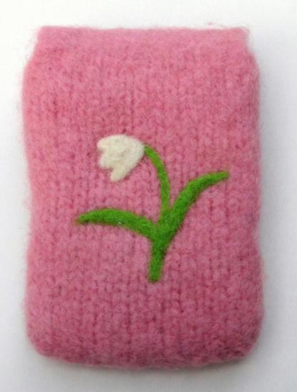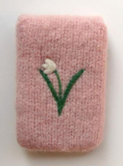 Sold Out40% OFF 羊毛フェルト ポーチ 小鳥とスズラン ライトピンク