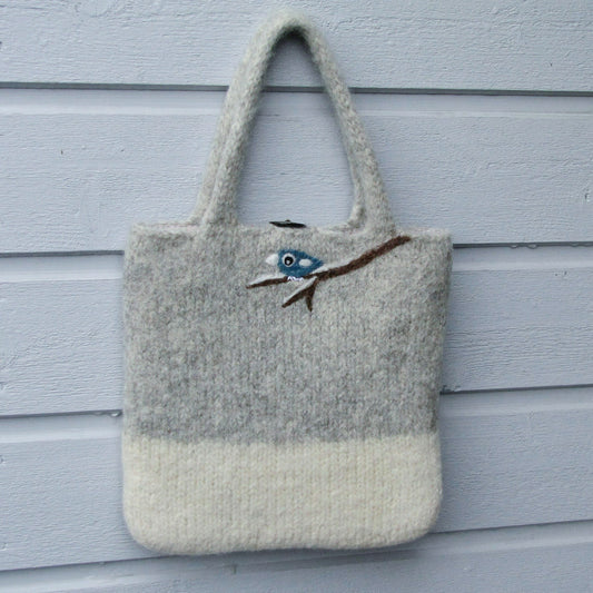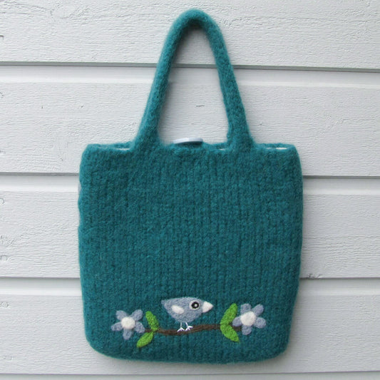 Sold Out40% OFF 羊毛フェルト ポーチ 小鳥とスズラン ライトブルー