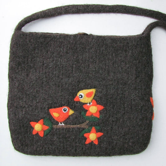 Sold Out40% OFF 羊毛フェルトポーチ 小鳥とチューリップ ライトブラウン