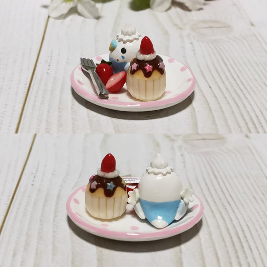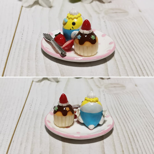 Sold Outミニチュア いちごカップケーキプレート 羽衣セキセイインコ レインボー