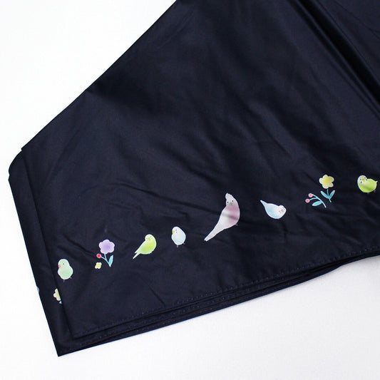 インコ柄折りたたみ傘 晴雨兼用 遮光ことりたちミニ 大きめサイズ セキセイインコ、オカメインコ、マメルリハ、ボタンインコ、コザクラインコ、モモイロインコ