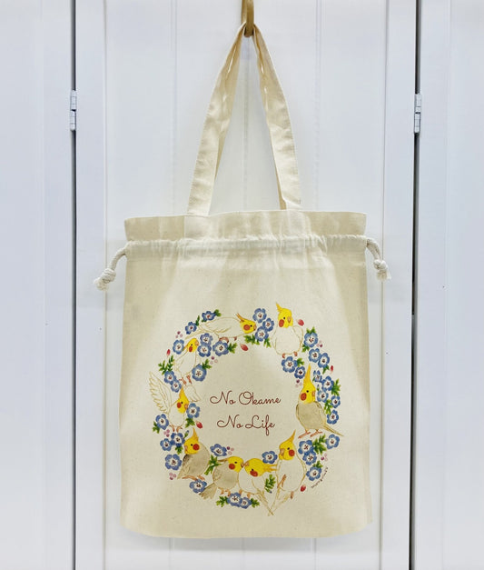 巾着トートバッグ エコバッグ オカメだけのリース 5オンス オカメインコ