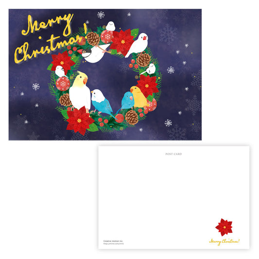 クリスマスカード 鳥さんオーナメント クリスマスリース