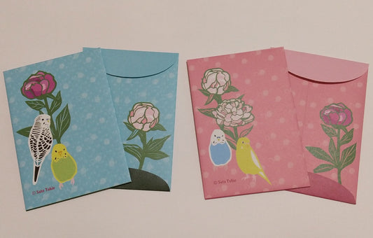 寄せ書きカード ボタンインコ、セキセイインコ、オカメインコ、文鳥