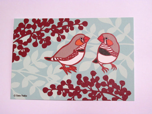 ポストカード ジュテーム セキセイインコ・黄ハルクイン+白ハルクイン