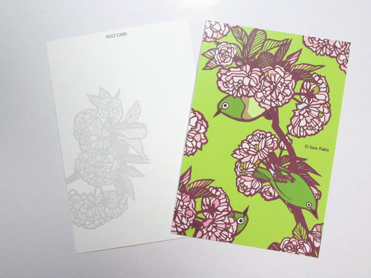 ポストカード 牡丹桜 メジロ (めじろ)
