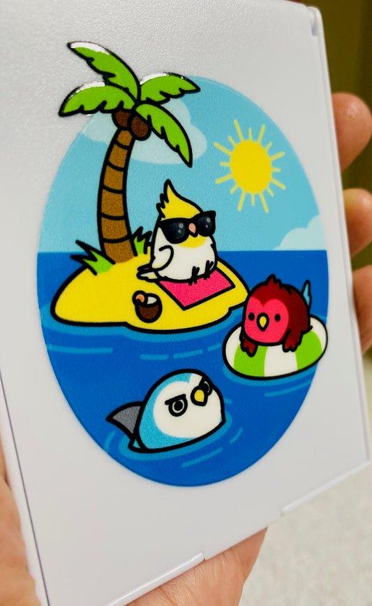 Chubby Bird コンパクトミラー 南の島で夏休み オカメインコ コザクラインコ