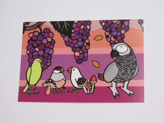 切り絵作家 サトウユキエ ポストカード 秋の収穫 ヨウム、文鳥、カナリア