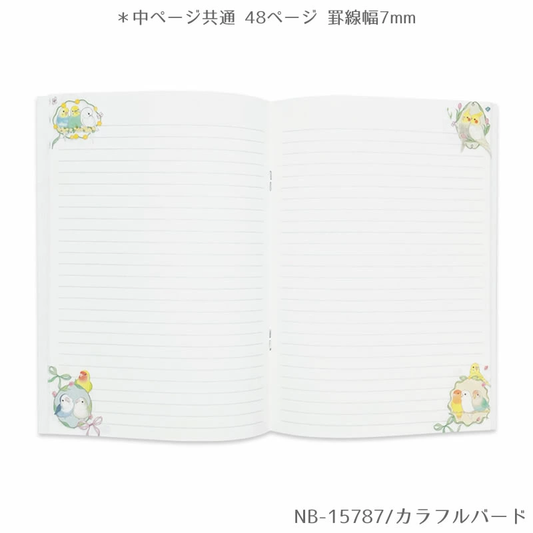 メモ帳 ことりたち キンカチョウ、セキセイインコ、マメルリハ、ボタンインコ、アキクサインコ、文鳥、コザクラインコ