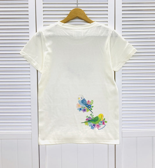 レディースTシャツ フラワーことりシリーズ セキセイインコ レインボー 受注製作 送料無料 クーポン利用不可