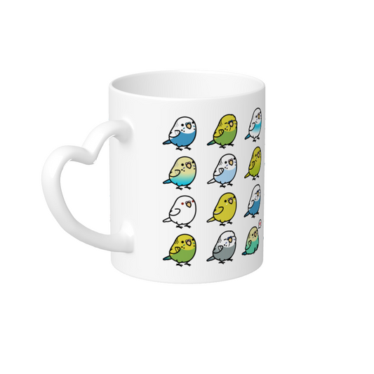 Chubby Bird セキセイインコ大集合 ハートハンドルマグカップ 360ml 受注製作 メーカー直送 クーポン利用不可