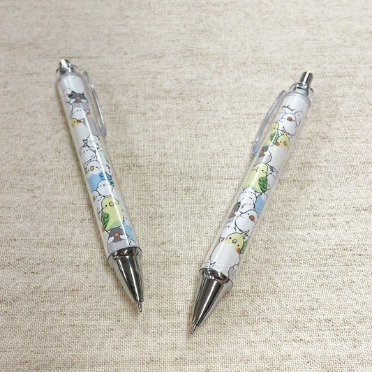 シャープペン シマエナガのインコと文鳥がいっぱい セキセイインコ、オカメインコ、文鳥、シマエナガ