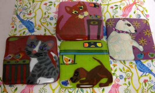 ガラスフュージング 小鳥とお友達コレクション ネコ コースター C