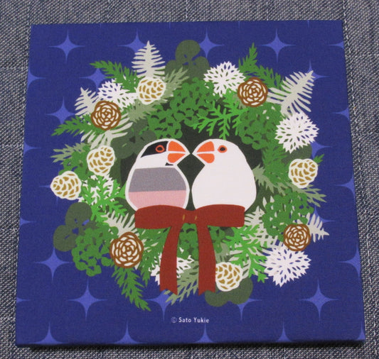 文鳥・クリスマス・ファブリックパネル 桜文鳥 白文鳥