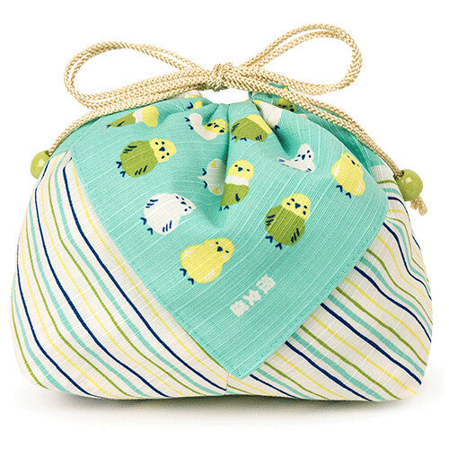 お弁当巾着 インコ並べ エメグリーン セキセイインコ オカメインコ