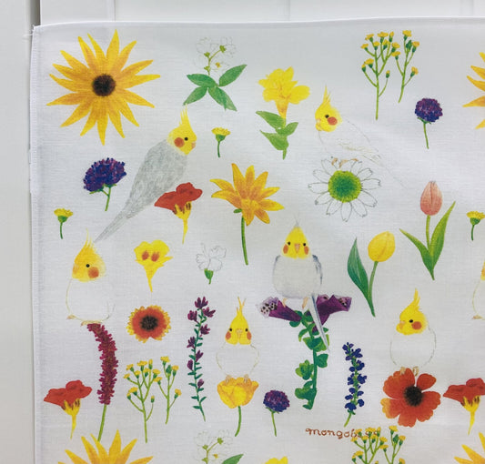 Pick Up大判ハンカチ ランチクロス 黄色花とオカメ 40x40cm