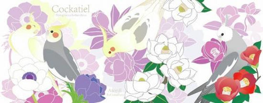 小鳥とお花のポストカード オカメインコ、ヨウム、カナリア