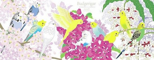 小鳥とお花のポストカード ズグロシロハラインコ、セネガルインコ、カナリア