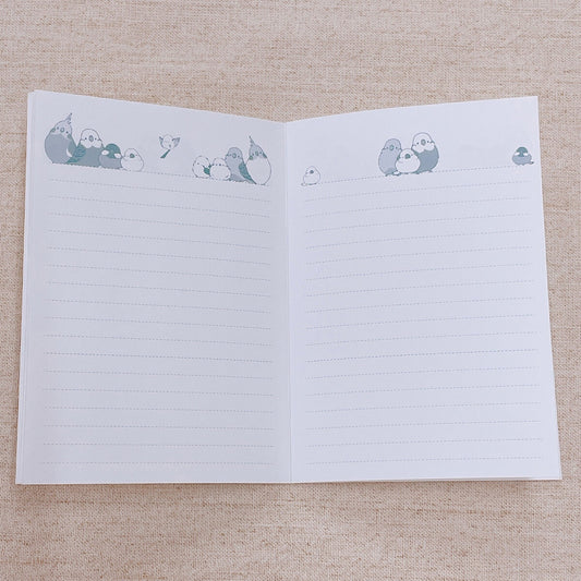 A6サイズノート シマエナガのインコと文鳥がいっぱい セキセイインコ、オカメインコ、文鳥、シマエナガ