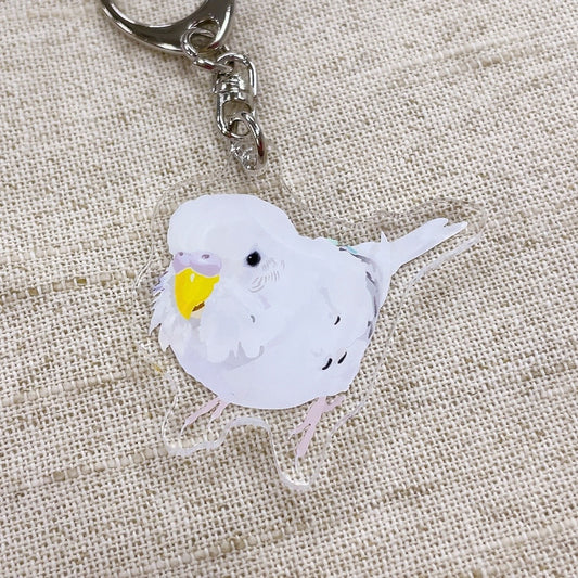 受注製作 アクリルキーホルダー とりアート セキセイインコ 白 クーポン利用不可