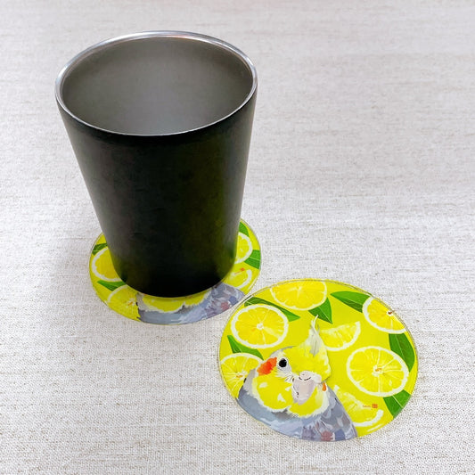 受注製作 アクリルコースター とりアート レモンレモン オカメインコ クーポン利用不可