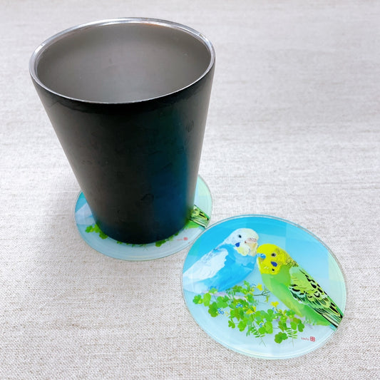 受注製作 アクリルコースター とりアート さわやかセキセイ セキセイインコ クーポン利用不可