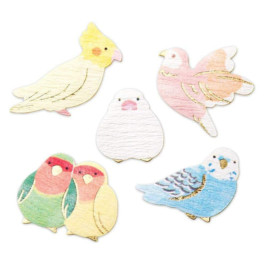 型抜き和紙フレークシール オカメインコ、文鳥、アキクサインコ、コザクラインコ、セキセイインコ