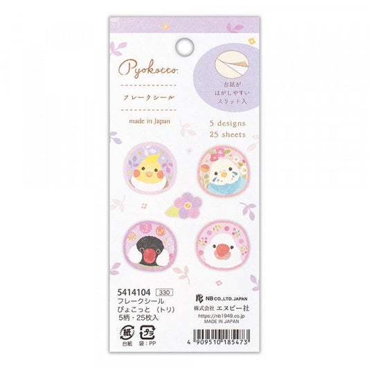 鳥さんとお花のデコレーションシール 文鳥 オカメインコ セキセイインコ コザクラインコ ボタンインコ カラー箔押し加工
