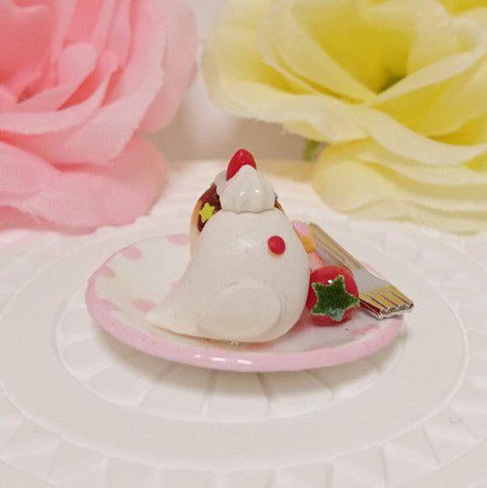 Sold Outミニチュア いちごカップケーキプレート 羽衣セキセイインコ クリーム