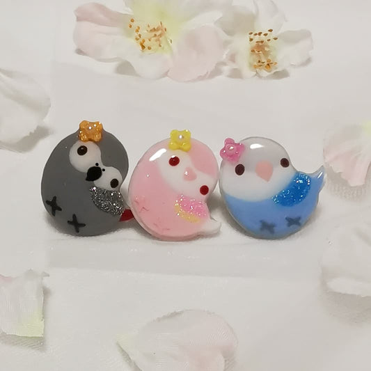 ブローチ お花とインコ セキセイインコ グリーン 1