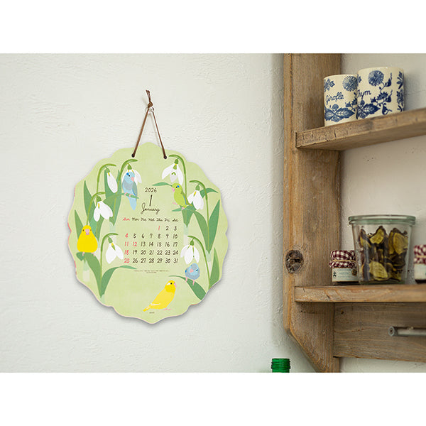 リアルなのに可愛いトリさんたちと、それぞれの季節にあったお花や果物との組み合わせが大人気の『トリ柄』カレンダー。お部屋のインテリアとしても素敵な、ダイカットの壁掛けカレンダーです。