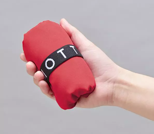 ゴムバンドで留めると、手のひらにおさまるコンパクトサイズになるのでサブバッグやエコバッグにおすすめ!