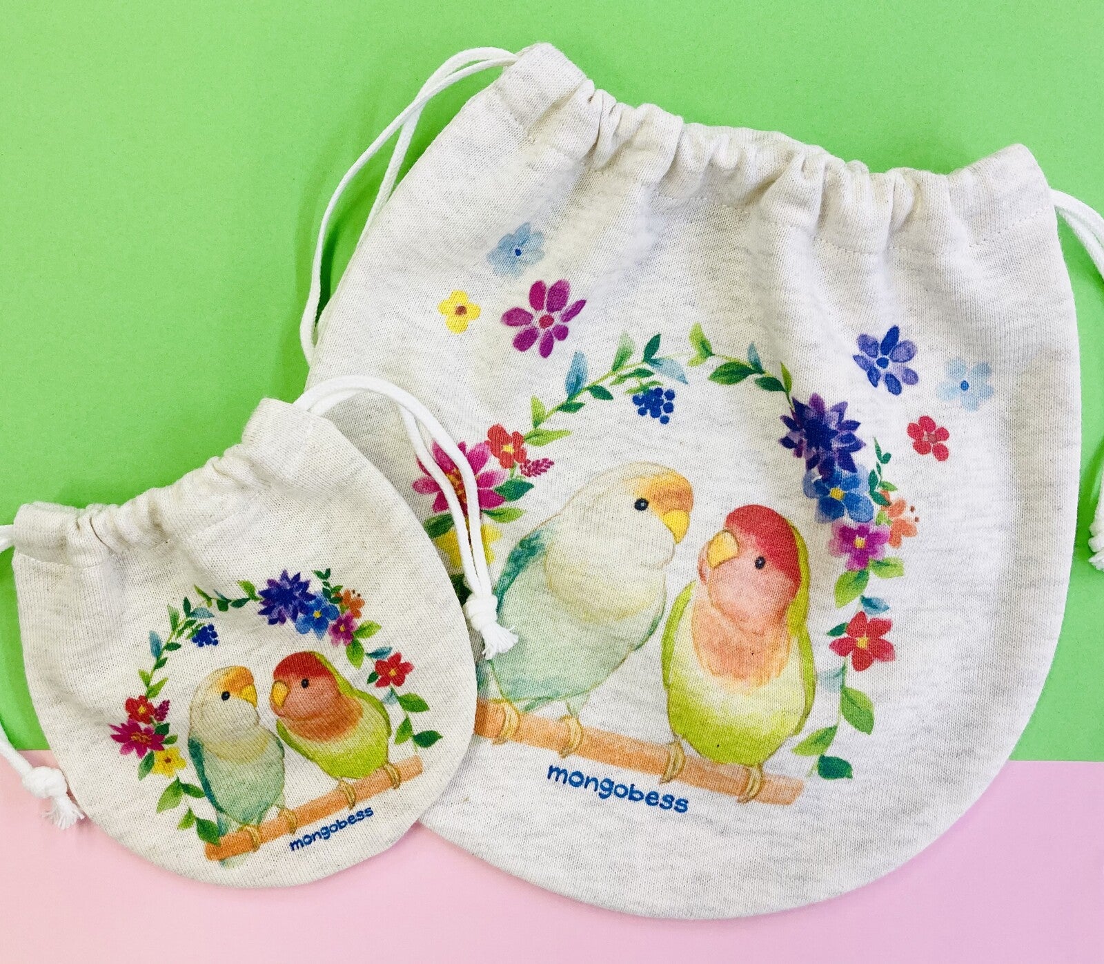 - 可愛いコザクラインコのMサイズの巾着です。