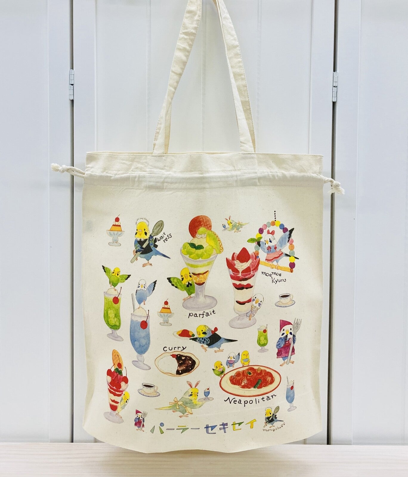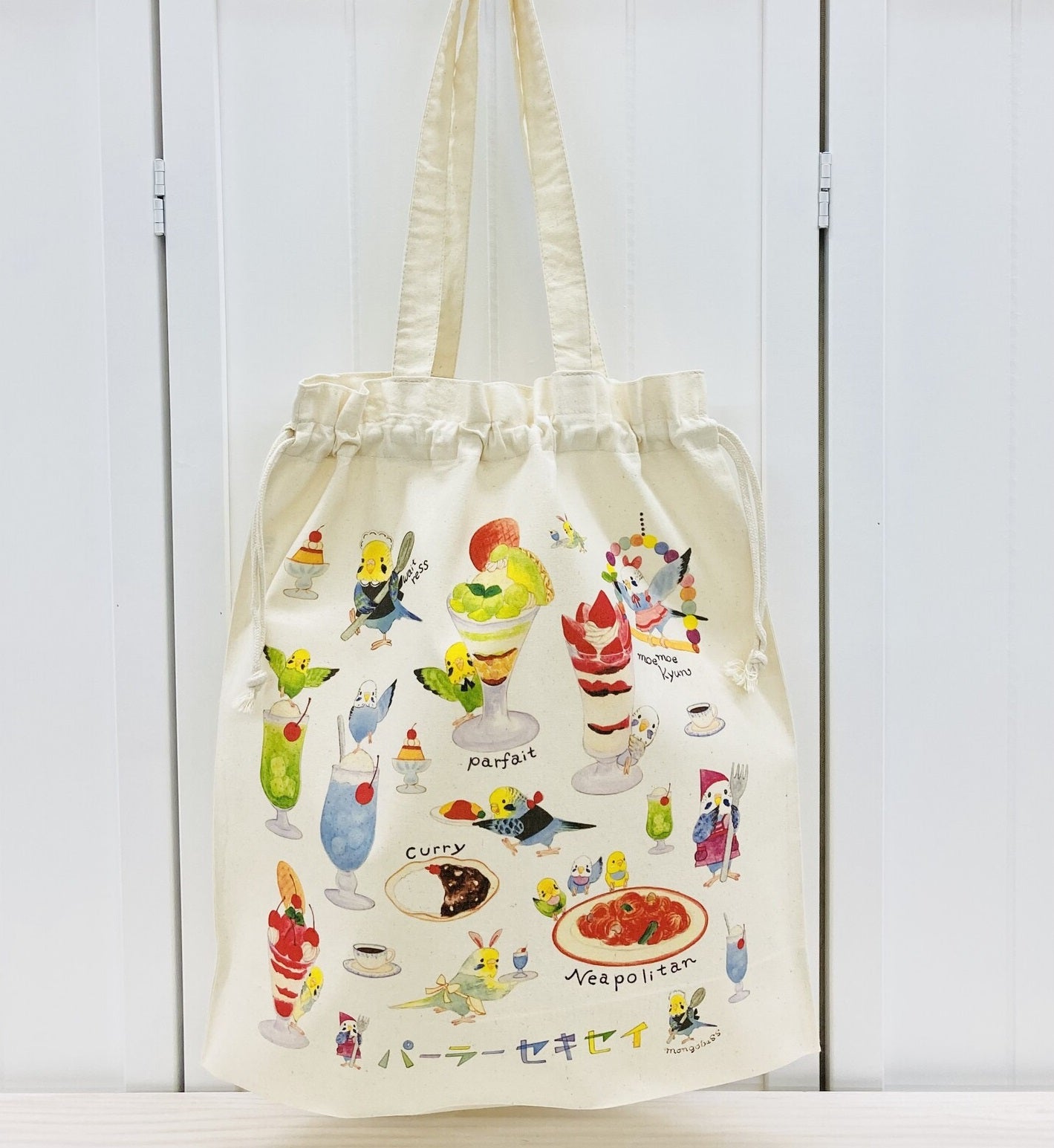 巾着トートバッグ エコバッグ パーラーセキセイ 5オンス セキセイインコ