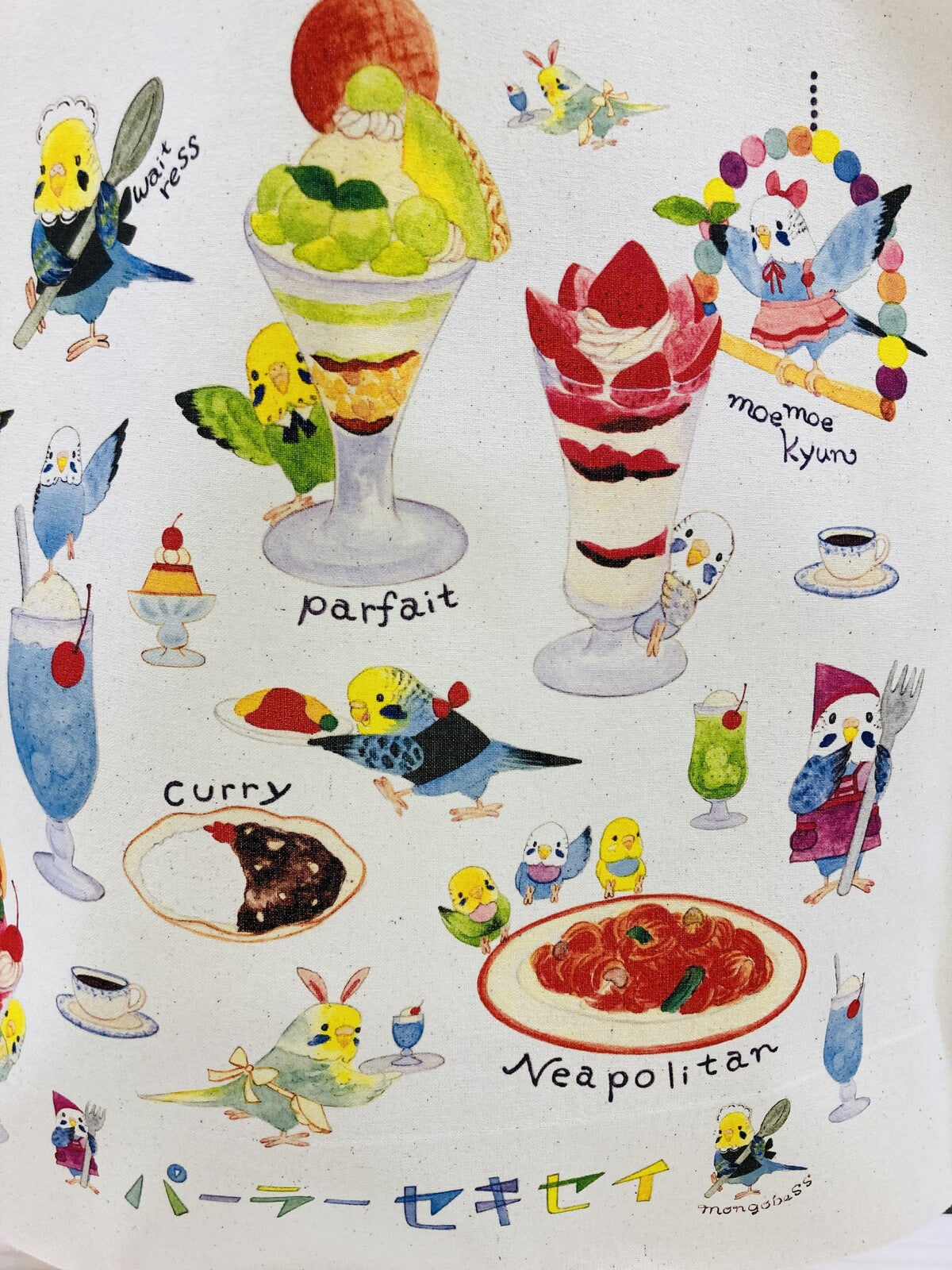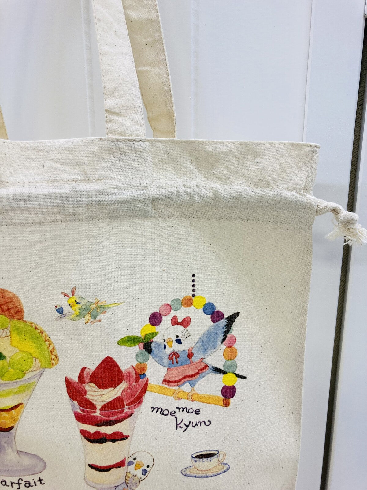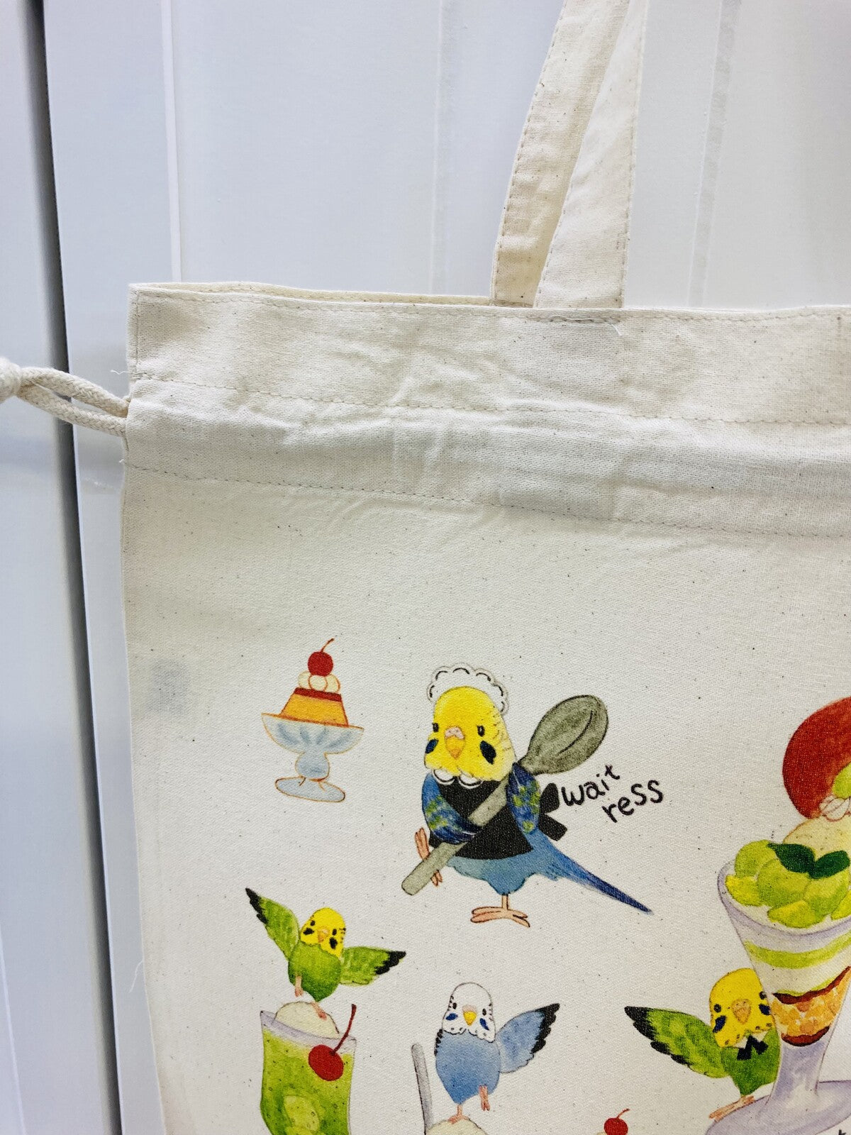 - とってもかわいいセキセイインコの巾着トートバッグです。