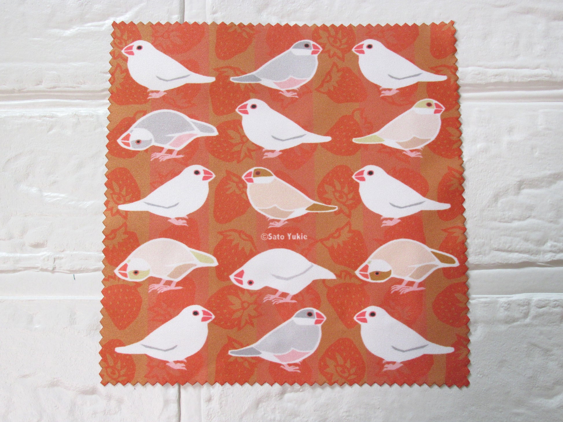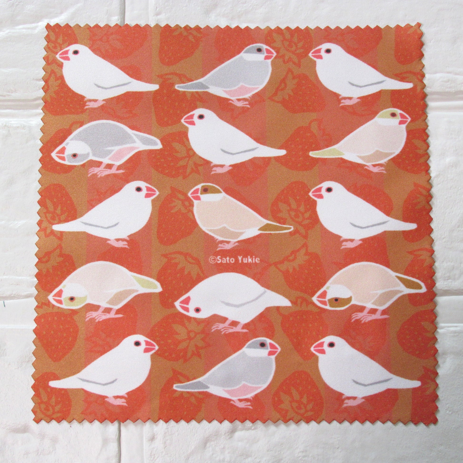 マイクロファイバークロス いちご文鳥(クリーム×シルバー×白×シナモン)