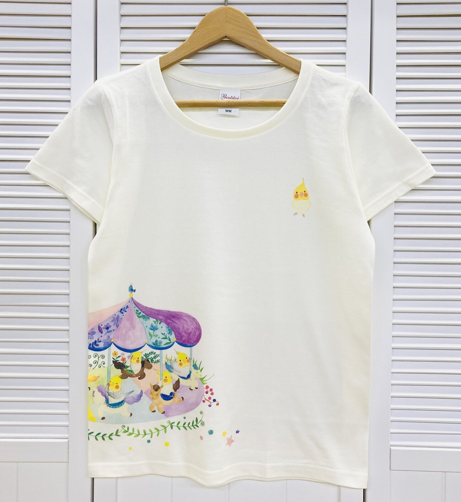 レディースTシャツ ことり遊園地シリーズ メリーゴーランド オカメインコ 受注製作 送料無料 クーポン利用不可