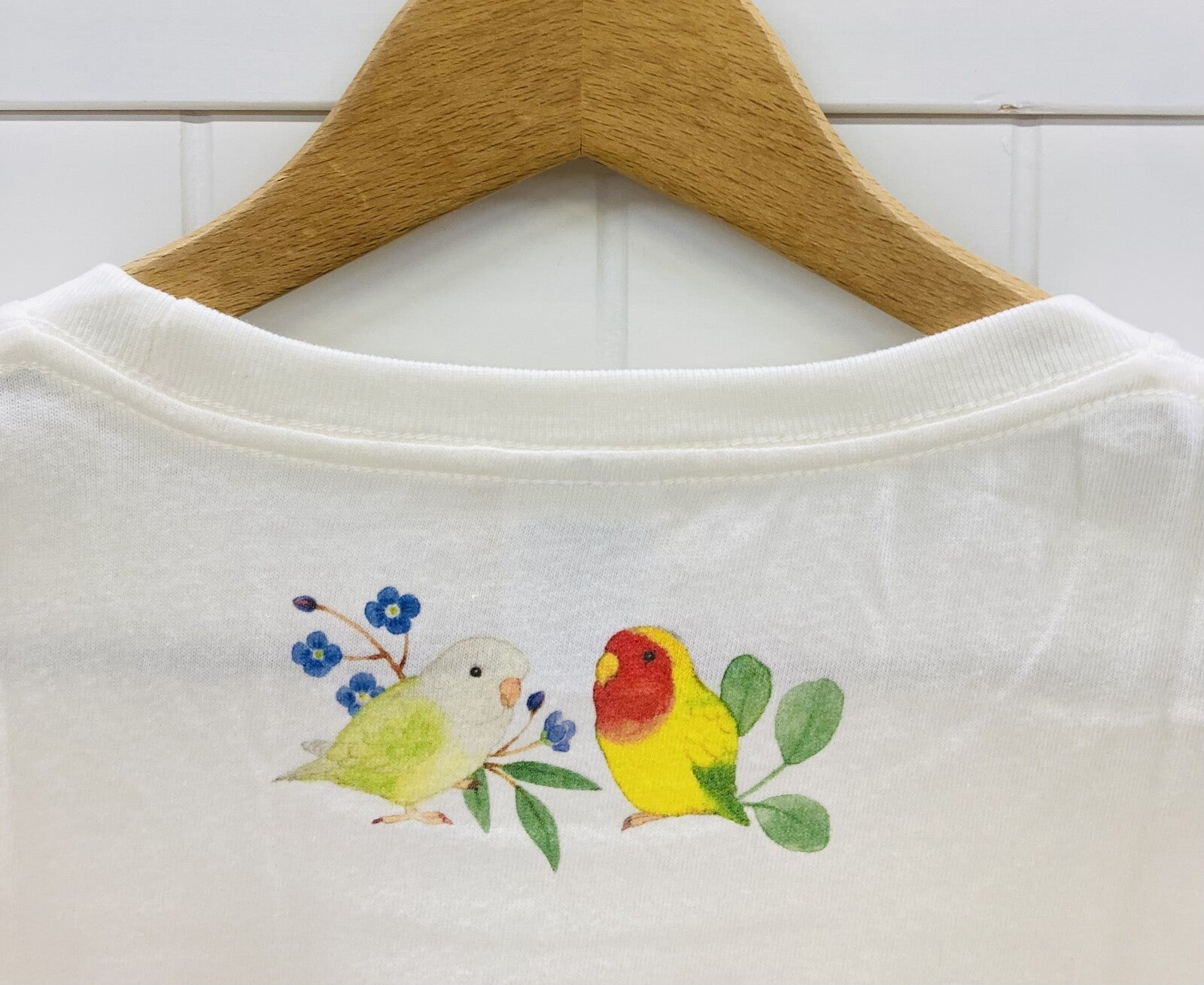 - とっても可愛いコザクラインコのレディースTシャツです。